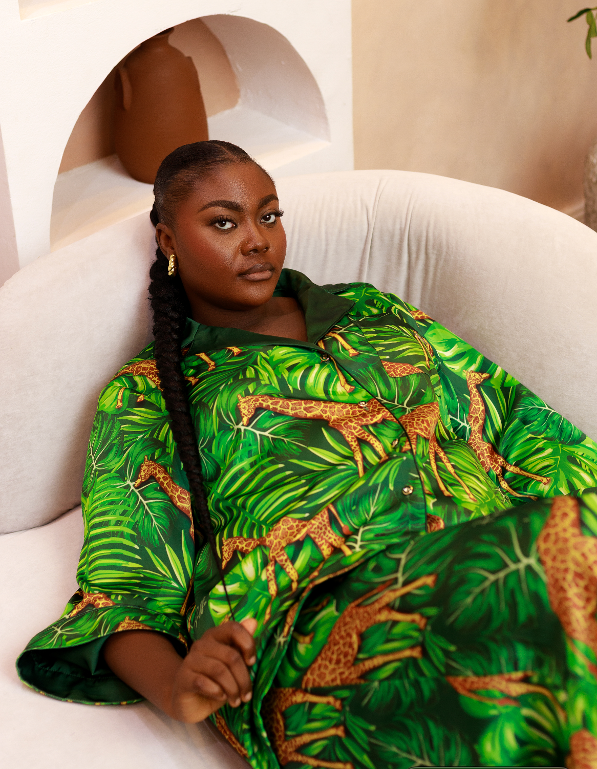Inspired by the effortless grace of the giraffe, each piece in this collection blends premium satin softness, bold yet refined prints, and thoughtfully extended proportions that honour long limbs without compromise. From the flowing robe to the tailored long line sets, Giraffe Luxe brings together rich textures, elegant silhouettes, and full length designs that tall women have been waiting for.